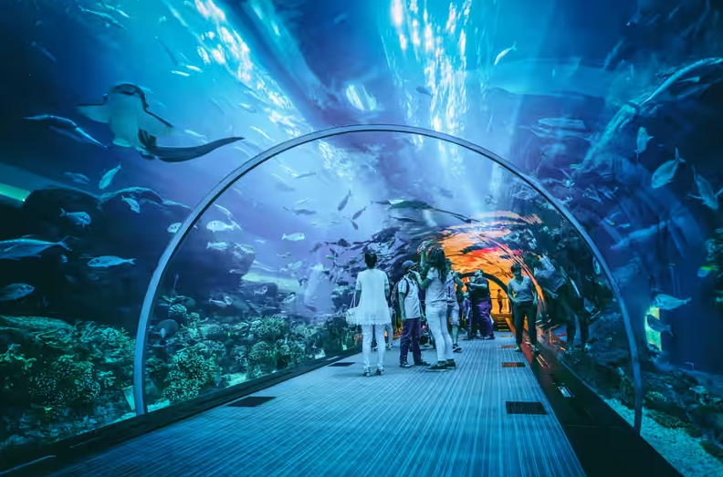 An oceanarium located beneath the convention center